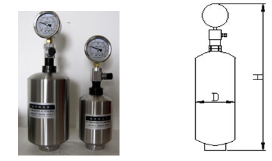氣囊式脈沖阻尼器的特點是靈敏度高,消除脈沖效果更好,能夠承受較高的壓力(我公司生產的氣囊式脈沖阻尼器最大耐壓31.5MPa),其結構是在空氣罐內加一個氣囊,氣囊內充入一定壓力的氣體,在管路中,管路中的液體壓縮氣囊,氣囊收縮,然后擴張,從而起到緩沖效果。和膜片式相比較,氣囊式脈沖阻尼器的靈敏度更高,緩沖效果更好,但是因其氣囊材質一般為橡膠材質,所以其使用范圍沒有膜片式廣,其選型方法是泵每次沖程的容積數乘以10,即得到能減小90%脈沖的最小容積數。